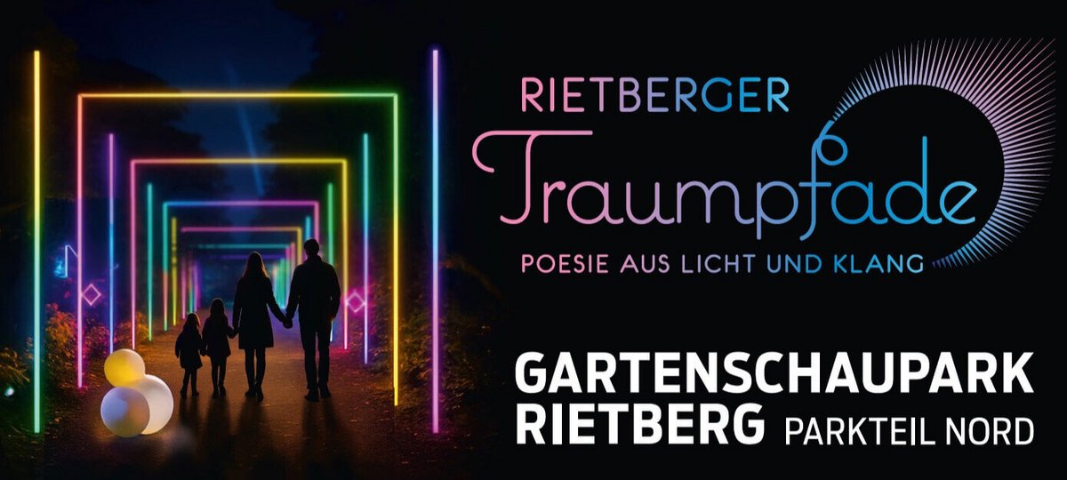 Wenn die Tage kürzer werden, verwandelt sich der Gartenschaupark in eine magische Traumwelt: Die Rietberger Traumpfade finden in diesem Jahr erstmals statt und versprechen den Besuchern eine Poesie aus Licht und Klang. Der Rundweg durch den kunstvoll illuminierten Parkteil Nord, der in Kooperation mit dem Bielefelder Experten für Special Effects und Show Design, Flash Art, konzipiert wird, vereint Lichter und Klänge zu einer beeindruckenden Symphonie. Der Weg führt durch beleuchtete Tunnel und vorbei an illuminierten Objekten, die einen fantastischen Anblick bilden. Die vorhandenen Bauwerke bekommen ebenfalls eine ganz neue Anmutung: So wird zum Beispiel der Rutschenturm durch hunderte von Blitzlichtern in ein Objekt verwandelt, aus dem blaue Arme und eine grüne Brücke herausragen... Zu viel soll natürlich noch nicht verraten werden, aber der Gartenschaupark verwandelt sich mit Licht, Lasern, Projektionen, Effekten und Soundcollagen in ein poetisches Erlebnis.