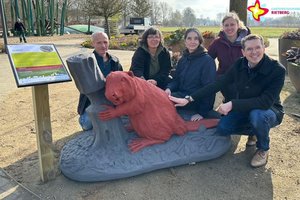 Rietberg. Der knallrote Laubfrosch fällt schon von Weitem ins Auge. Und auch die leuchtend rote Weinbergschnecke ist nicht zu übersehen. Zusammen mit 14 weiteren überlebensgroßen Skulpturen bilden Frosch und Schnecke den “Demonstrationszug der Tiere”. Geschaffen wurden die 16 Plastiken vom Bildhauer Raphael Johannes Strauch aus Willebadessen, der seine Werke für drei Monate dem Gartenschaupark Rietberg zur Verfügung stellt. Zu sehen sind die Skulpturen ab Samstag, 28. März, im gesamten Parkteil Mitte.