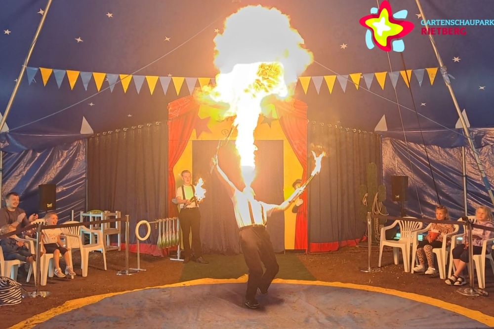 Im eigens dafür aufgebauten Zirkuszelt im Parkteil Nord gibt es die ganzen Ferien über Zirkusvorstellungen sowie ein lustiges Live-Puppentheater mit Anna, Elsa und Olaf dem Schneemann, die magische Ostern feiern. Die Puppen treten in Lebensgröße und auch als Handpuppen in Erscheinung. Die Abenteuer von Anna, Elsa und Olaf wechseln sich während der Woche täglich um 15 Uhr ab mit Zirkusshows voller Akrobatik, Jonglage und Zauberei. An den Samstagen, Sonn- und Feiertagen gibt es beides: um 11 Uhr Puppentheater, um 15 Uhr Zirkus.