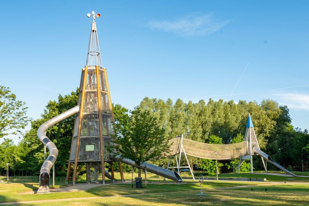 Üppig blühende Beete in Tropfenform, ein großer Kletterspielplatz und ein Wasser-Matsch-Bereich mit Strandkörben ziehen die Besucher schnell in ihren Bann. Die Stufen der Seeterrasse laden zum Verweilen am künstlich angelegten See ein. Die kleinen Besucher können sich austoben, die großen Gäste die Seele baumeln lassen. Das alles zwischen tausenden blühenden Blumen.